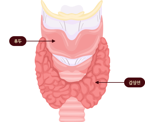인체 기관의 기능을 적절하게 조절하는 갑상선 호르몬을 생산하여 혈액으로 보내는 내분비기관입니다.