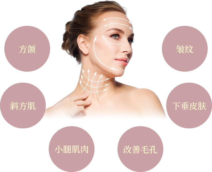通过使用高频、超声波等的非切开方式,提高下垂皮肤的弹力、