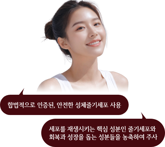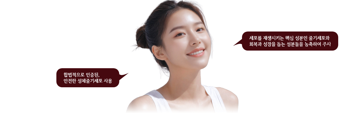 세포를 재생시키는 핵심 성분인 줄기세포와 회복과 성장을 돕는 성분들을 농축하여 주사하기 때문에